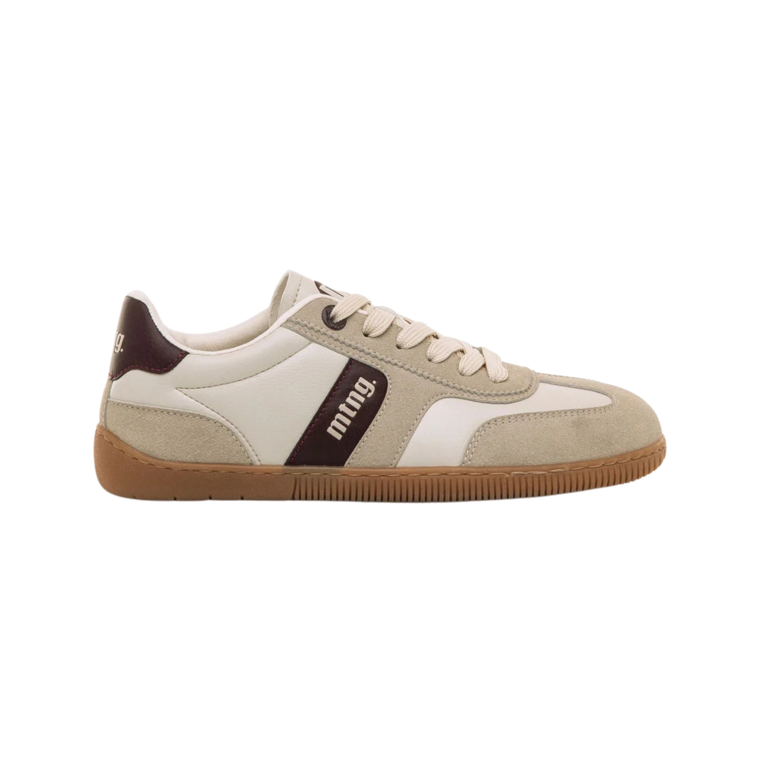 Los detalles como el refuerzo del talón con el nombre de la marca y las costuras visibles le aportan un carácter deportivo y actual. Los cordones a tono cálido completan una silueta sencilla y estilizada, perfecta para acompañarte en cualquier momento del día.